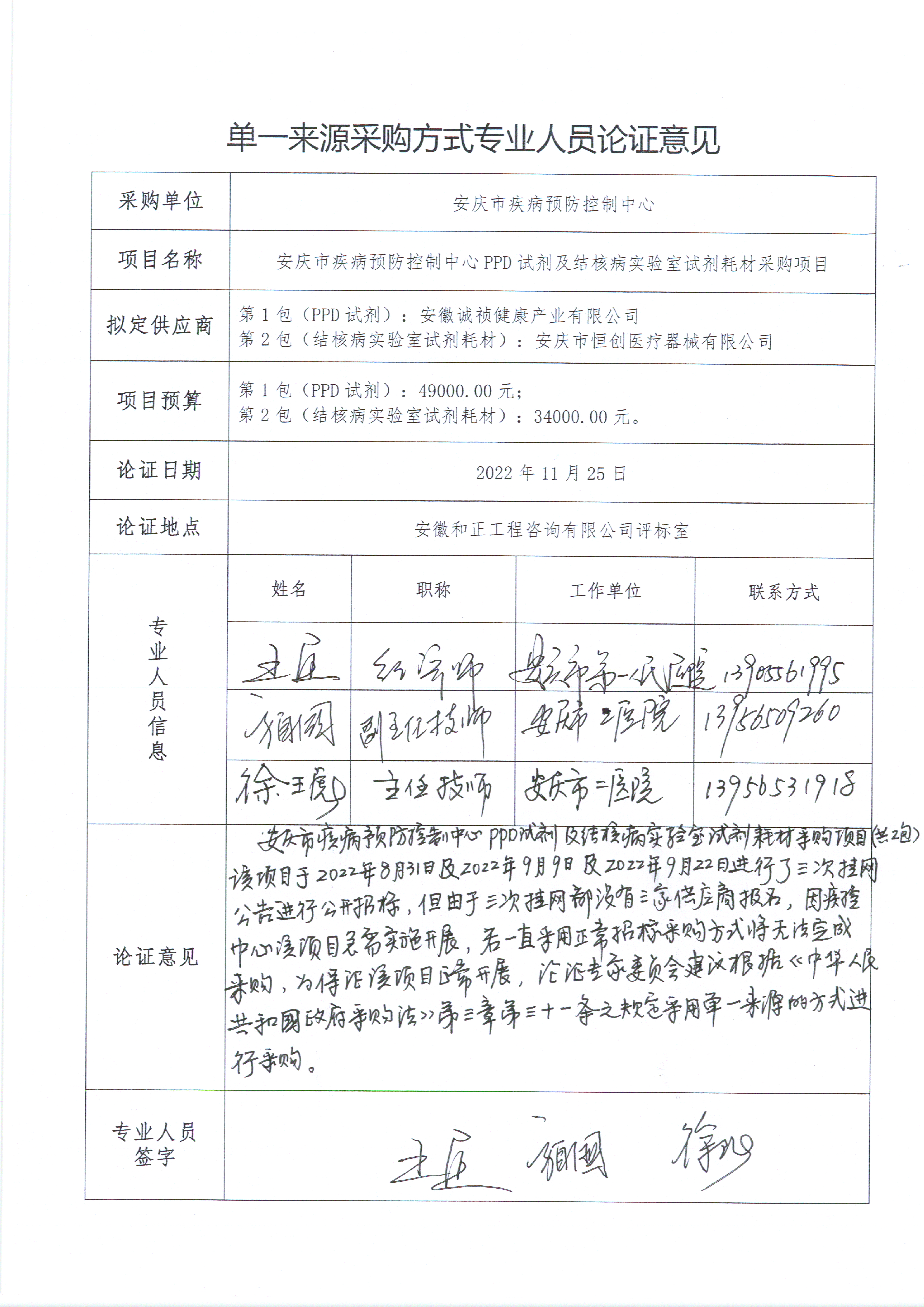 4.擬采購的貨物或服務(wù)的預(yù)算金額:包一:49000.00元;包二:34000.00元。 5.采用單一來源采購方式的原因及說明:該項目于2022年8月31日進(jìn)行了第一次掛網(wǎng)公告,在公告期間第1包(PPD試劑〉報名單位只有1家:安徽誠禎健康產(chǎn)業(yè)有限公司;第2包(結(jié)核病實驗室試劑耗材)報名單位只有1家:安慶市恒創(chuàng)醫(yī)療器械有限公司。又于9月9日、9月22日進(jìn)行第二次、第三次掛網(wǎng),均無其他供應(yīng)商報名。因項目急需實施開展,若一直采用正常招標(biāo)采購方式將無法完成采購。故本項目擬采取單一來源方式采購,包一由