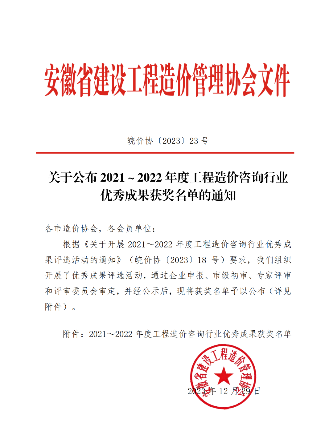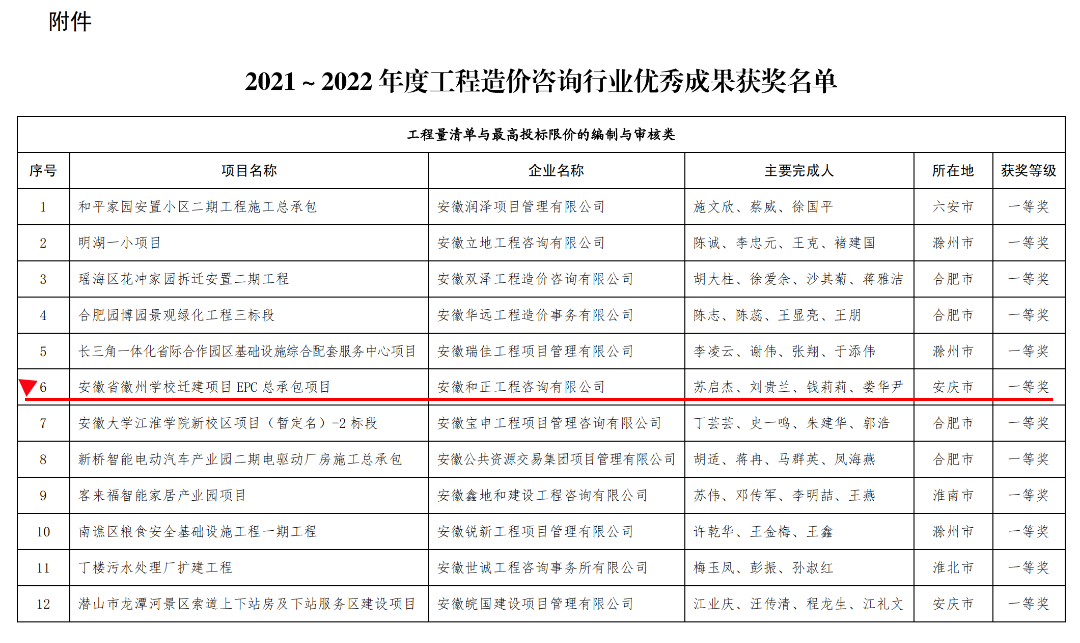 喜報(bào)|安徽和正工程咨詢有限公司榮獲2021~2022 年度安徽工程造價(jià)咨詢行業(yè)優(yōu)秀成果一等獎(jiǎng)