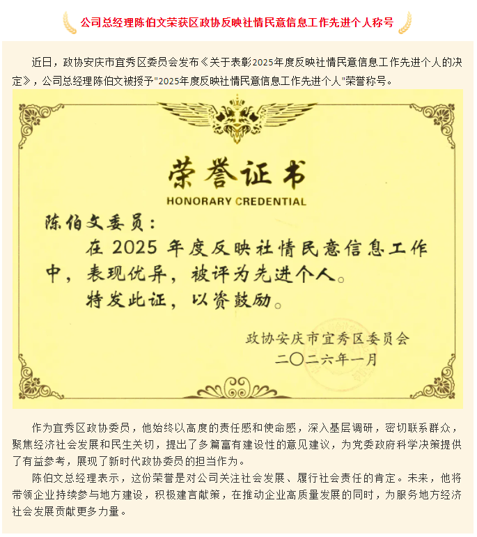 公司總經(jīng)理陳伯文榮獲區(qū)政協(xié)反映社情民意信息工作先進(jìn)個人稱號