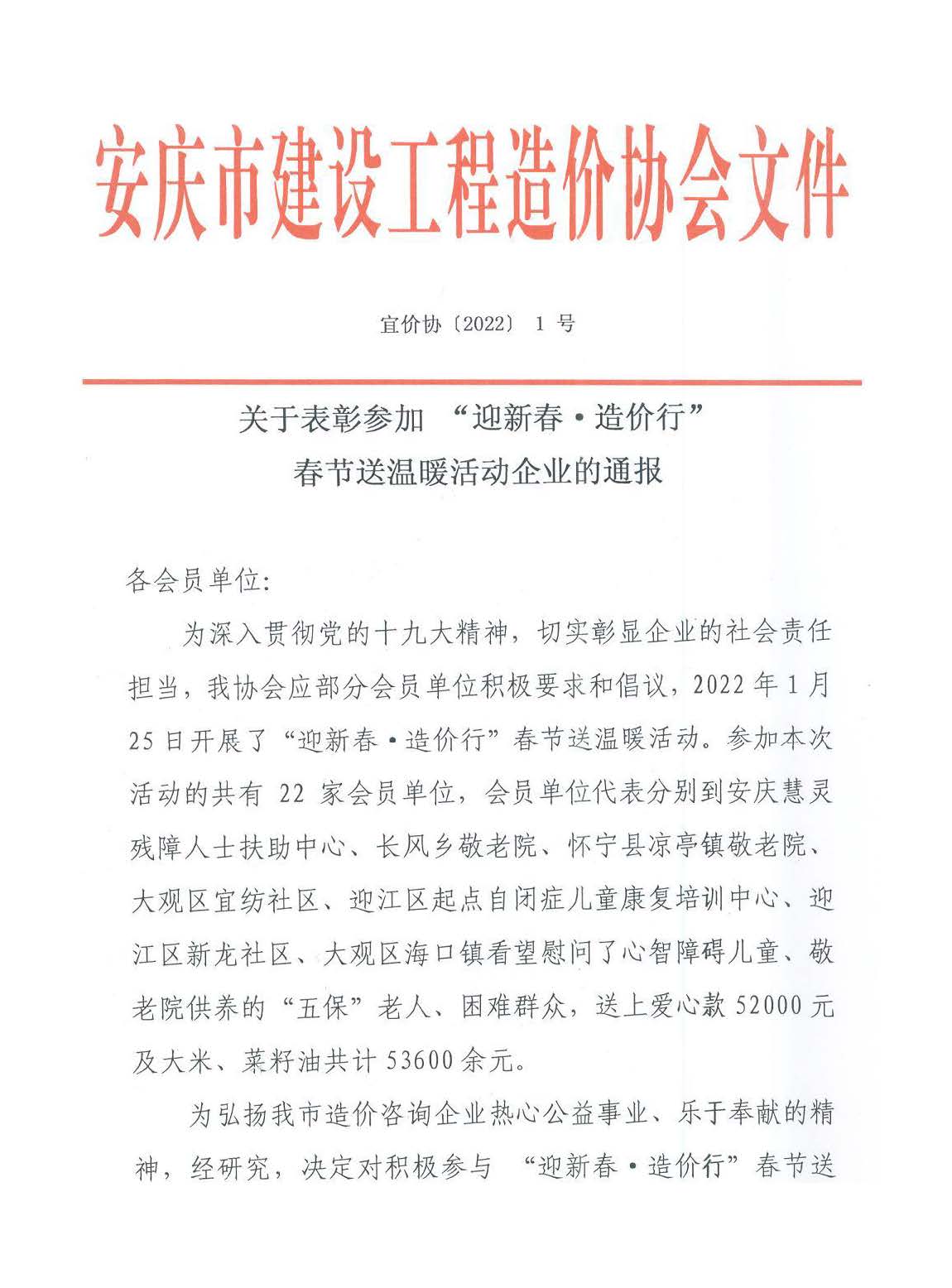 關(guān)于表彰參加“迎新春?造價(jià)行”春節(jié)送溫暖活動企業(yè)的通報(bào)